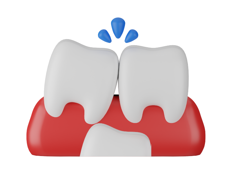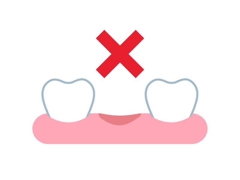 乳歯が残っていると、隣接する永久歯がスペース不足で斜めに傾いたり、歯が移動して歯列全体がガタガタになることがあります。放置すると咬み合わせに悪影響を及ぼします。